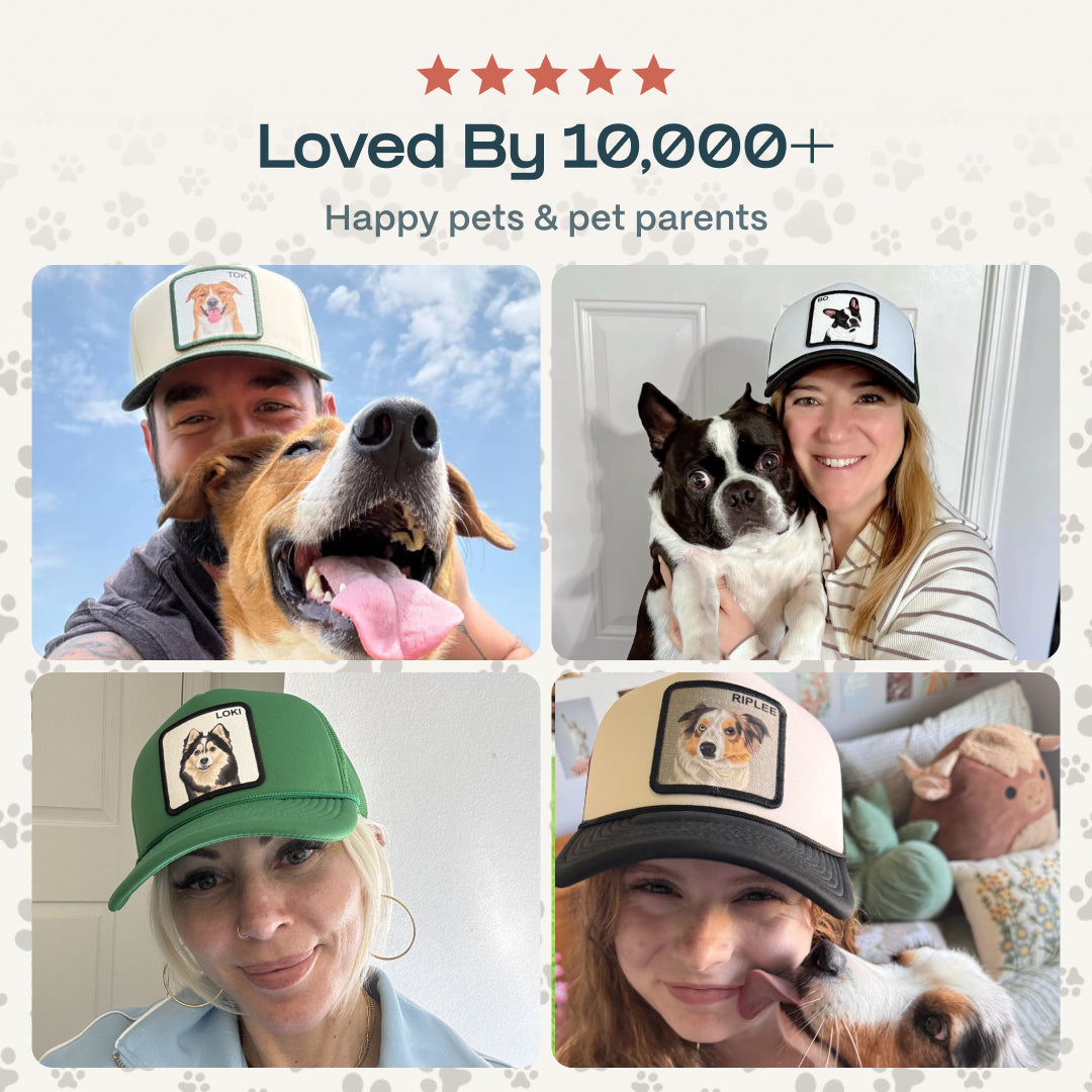 Handcrafted hats featuring your pet's face. Over 10,000 pet parents are obsessed and strangers always ask where they got it.